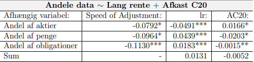 med undtagelse af et stød til afkast på aktier med hensyn til andel af holdte obligationer, derudover findes de samme fortegn, som ved ARDL Bounds testen.