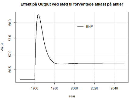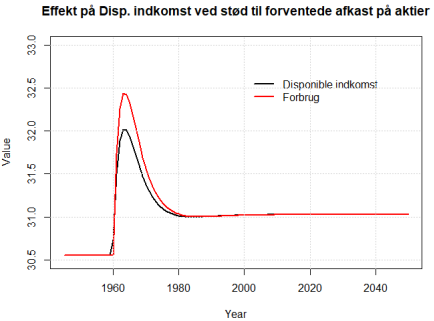 Her ses et eksempel med et positivt stød til afkast på aktier i form af en stigning i afkastet på C20 indekset på andel af aktier de danske husholdnigner ønsker at holde.
